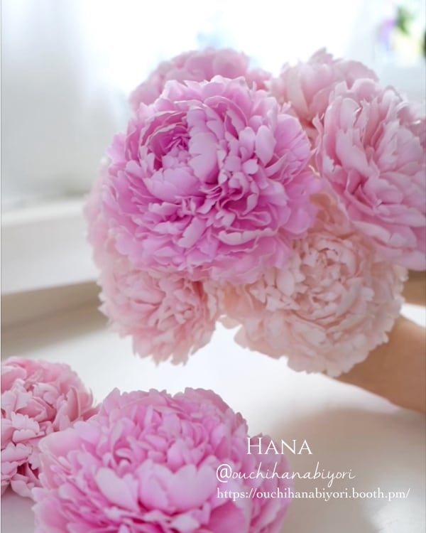 本物のピオニーの花びらをトレースし、高さや切れ込みの入り方、バランスを調整。組みやすく、自然な花姿になるようにデザインしました。