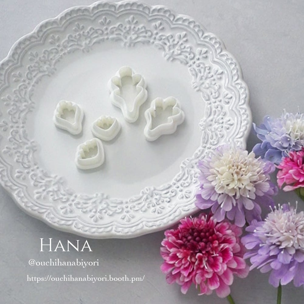 また、動画で紹介したカッターに加え、ひとまわり大きい花弁も追加しており、小ぶりでコロンとした花から平たく広がった花まで表現できます。