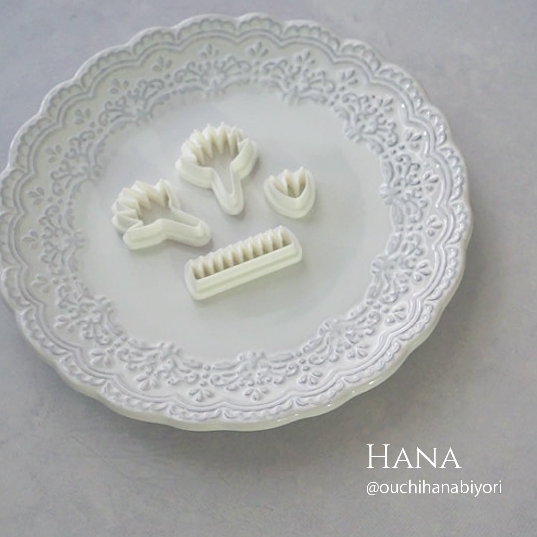 6枚花びら用・7枚花びら用・花芯用・ガク用の4種類がセットになっています。