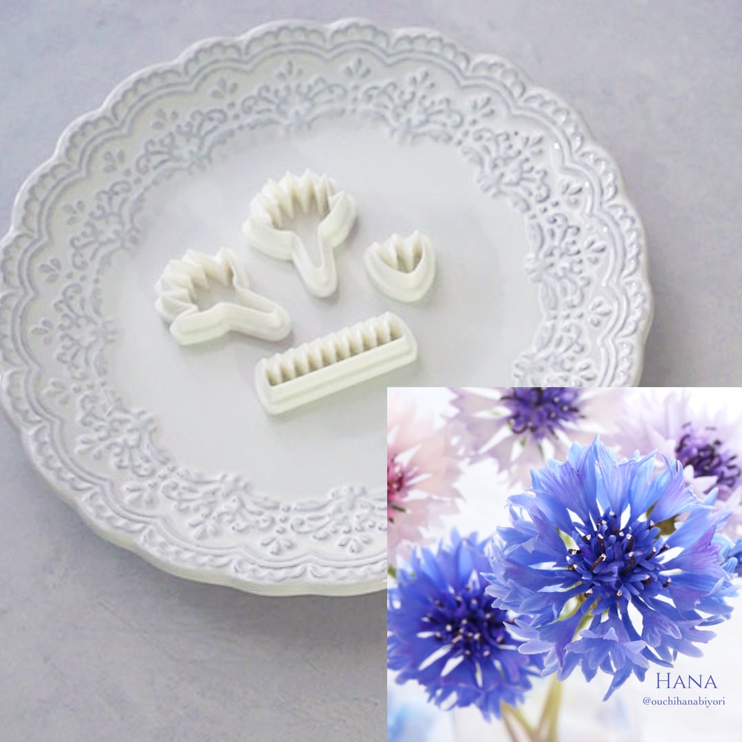 This clay cutter set allows you to easily cut cornflower (Centaurea) petals with just one press.