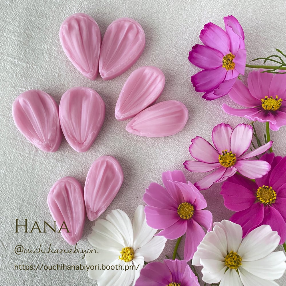 コスモスの花びら模様をワンタッチで型押しできる粘土用の押し型、シリコンモールドです。