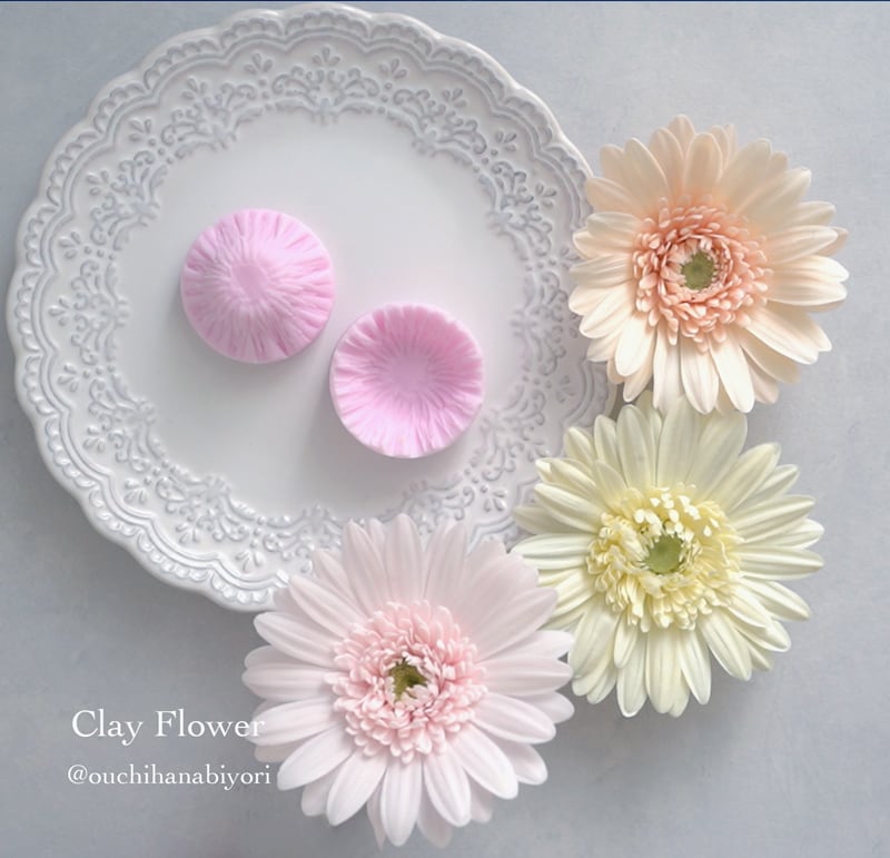 Place a piece of clay (about ⌀5 cm when rolled out) between the two sides, press, and you can easily imprint the natural sepal texture.